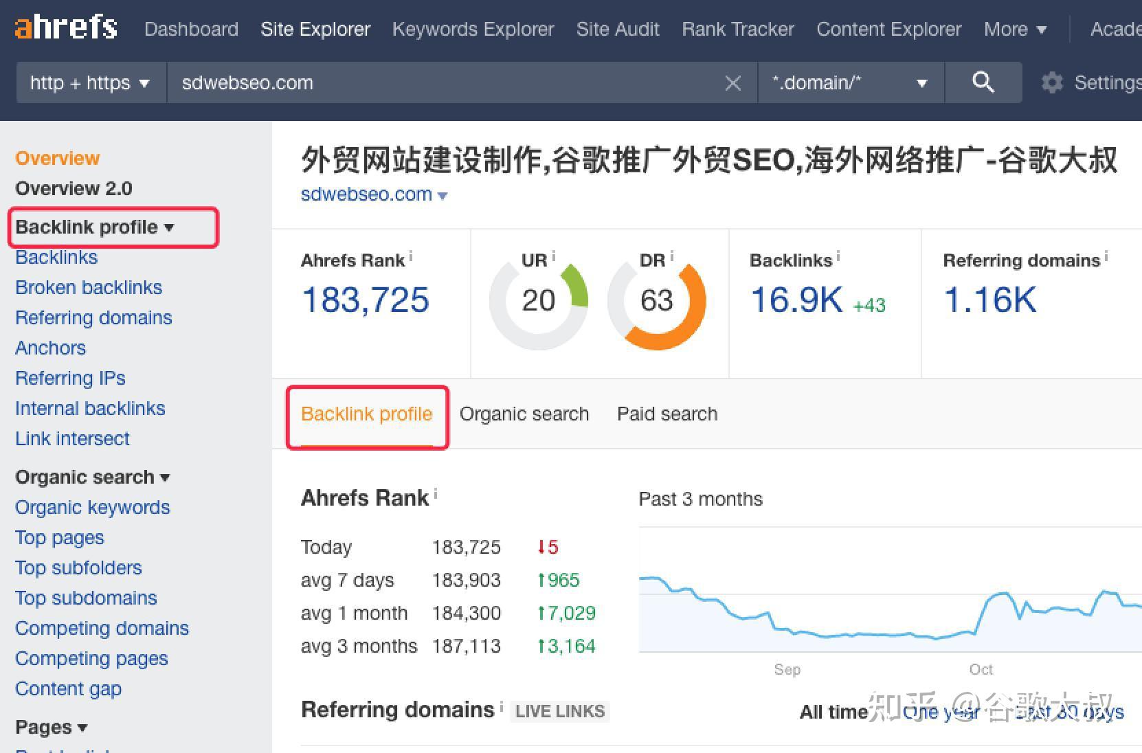 查看外链是否稳定的工具-Ahrefs-Backlinks profile工具