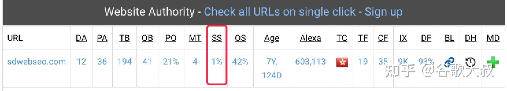 SS值不能高于1%SS(Spam Score)垃圾得分,SS得分是Google搜索引擎对网站的惩罚的积累得分。选择外链时SS的值不能高于1%。
